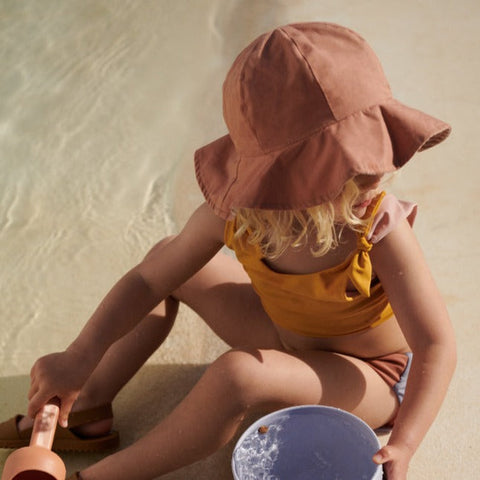 the LiewOood sun hats and the sun hats of konges slöjd have a longer piece on the neck. This way your little one does not get too hot and the neck is also protected. There are super many different sun hats with solid colors, but also with nice prints that you can match your child's outfit!