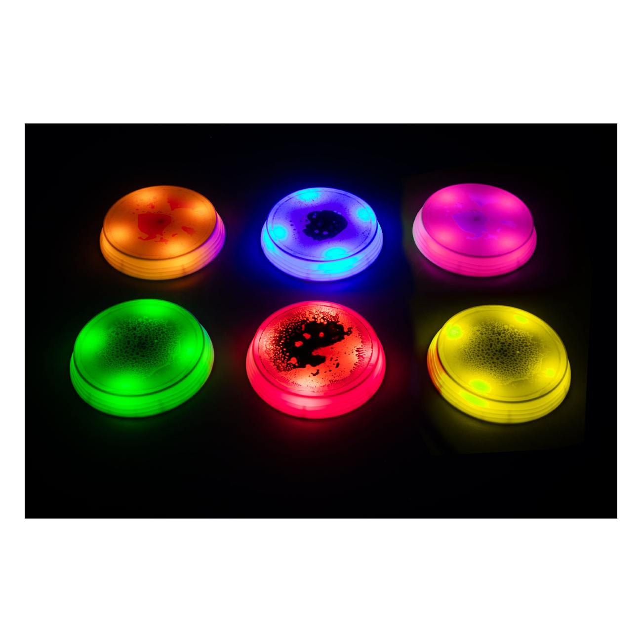 These round LED stepping stones with a liquid interior make every step a magical moment. When children step on the stone, the liquid starts to move and the stone automatically lights up in multiple colors. Let children balance, move and explore while stimulating their senses, perfect for home, school or a therapy room.