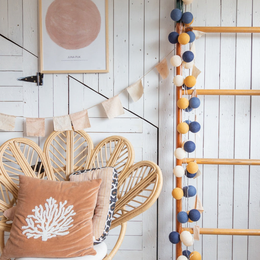 Tip! Lay the cotton balls on the dresser, cupboard, in a bowl, vase, on the table, fireplace or even in your fireplace or stove. In addition, it is also very nice to hang the Garlands in, for example, the children's room or even in your Christmas tree. Experiment and create your own atmosphere. And do you want to change color?