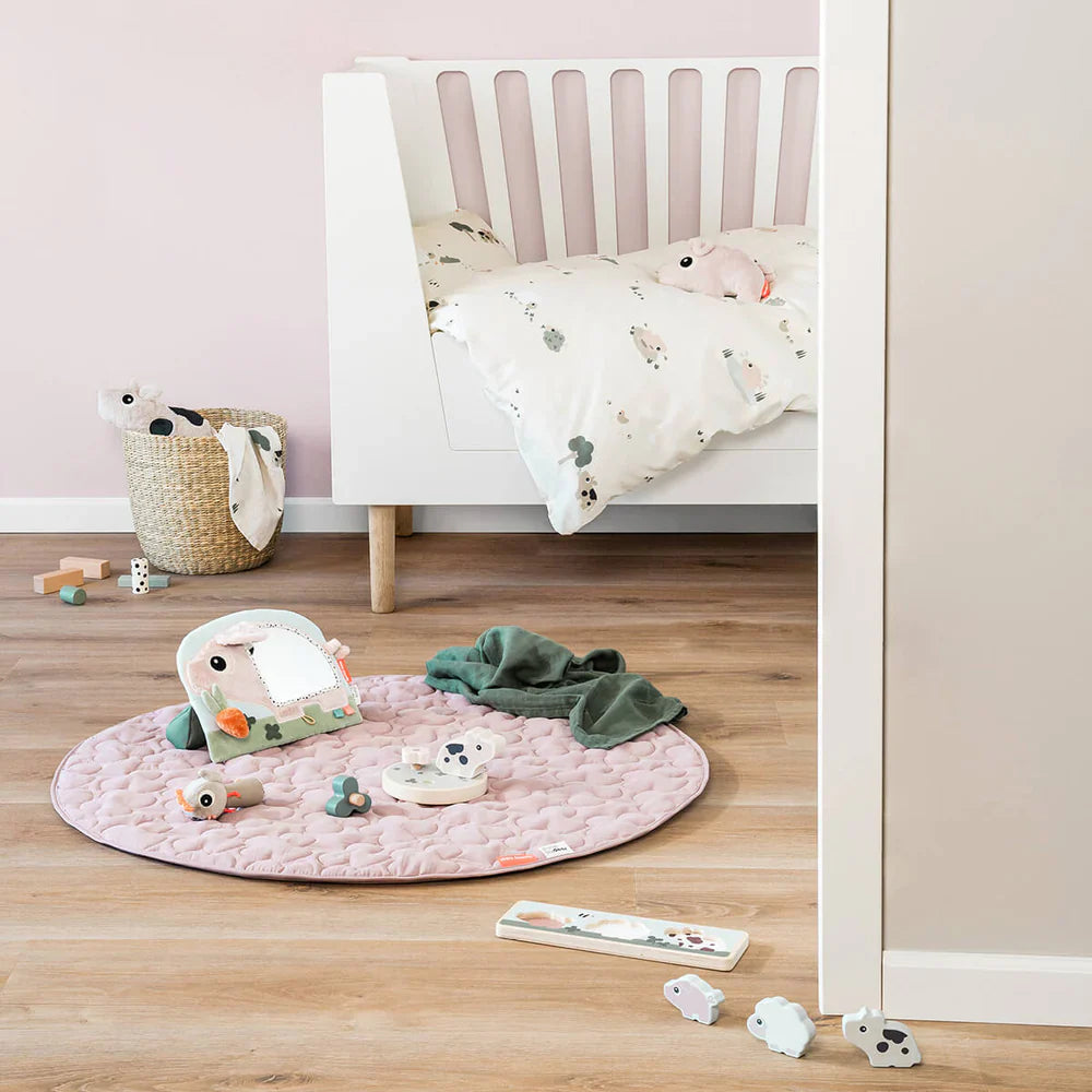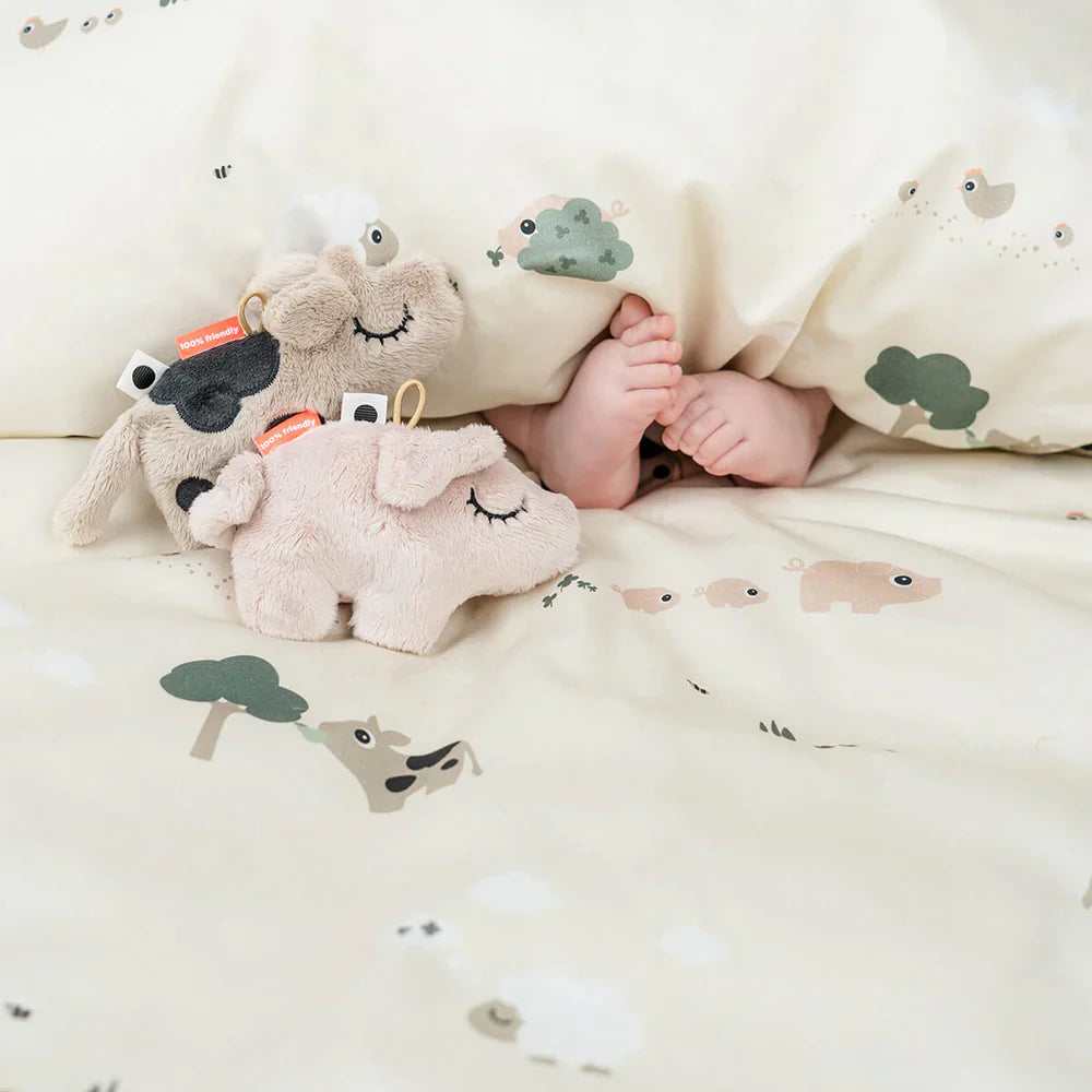 Beautiful bed set from Done By Deer to dream away. A nice crocodile print on the top and bottom. Comes with matching cushion cover in a nice fabric bag. This bed set is also great to give as a gift.