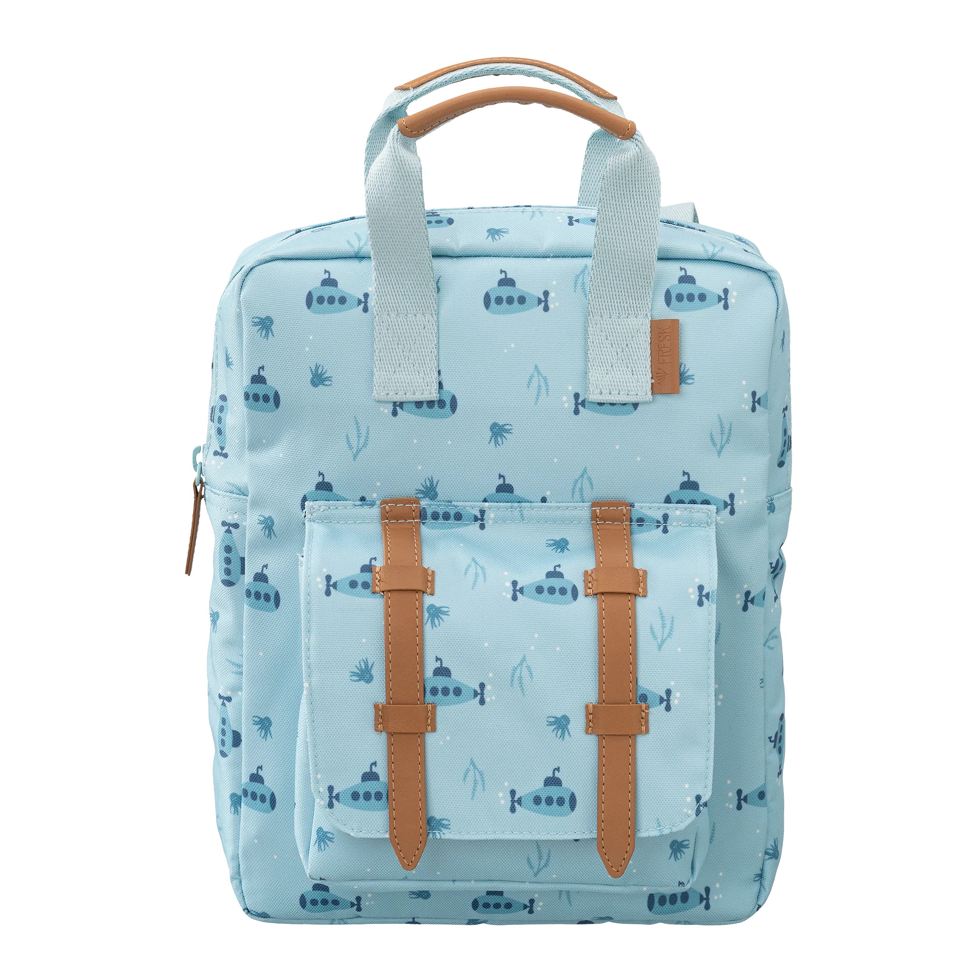 Wonderfully cheerful backpack from the Fresk brand! The backpack has 1 large storage compartment inside and a separate compartment for a drinking bottle. There is a small extra pocket at the front with a magnetic closure.