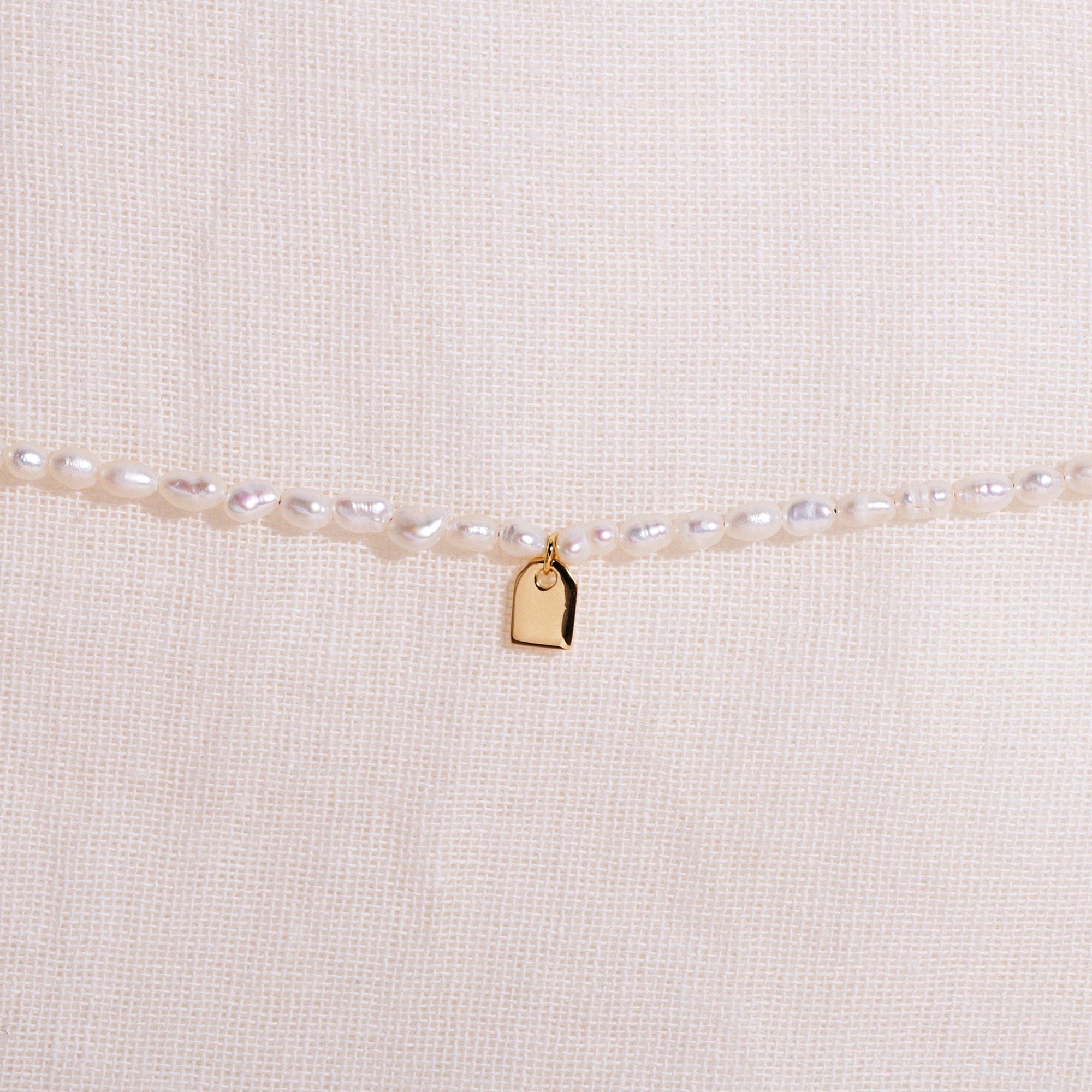 Made from freshwater pearls and a .925 sterling silver. Of course & Radiant! This Pearl & Tag bracelet matches super nice with the Pearl & Tag necklace or pearl ring.