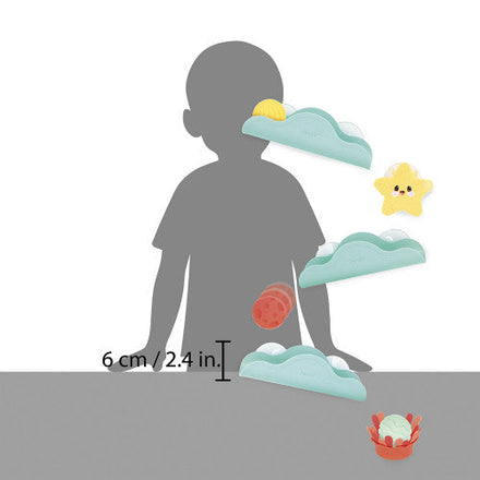 Taking a bath becomes even more fun with this sea bath circuit from Janod. Suitable for children from 12 months. Fun in the bath or shower where you can create a vertical course where the balls roll straight down.