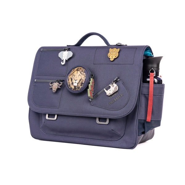Very easy to use, with two sturdy adjustable, ergonomic back straps. The Jeune Premier school bag is of high quality and the perfect size and size for the first year. Very practical with 1 compartment, made of 100% water-repellent canvas and equipped with 2 handy storage compartments on the inside, ideal for a lunch box, drinking bottle and covers. There is an extra storage compartment at the front with a child-friendly snap closure