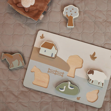 nice wooden insert puzzle from Jollein. The thick puzzle pieces can also be used as a play figure in fantasy game. The extra thick puzzle pieces are easy to grasp due to small children's hands.