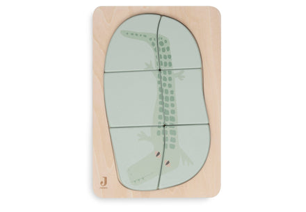 Nice wooden puzzle from Jollein. The thick puzzle pieces can also be used as playing figures in fantasy play. The extra thick puzzle pieces are easy for small children's hands to grasp.