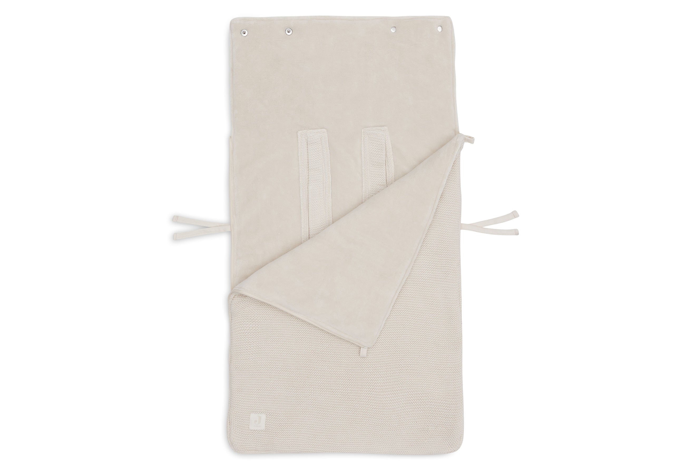 This soft and warm footmuff is ideal for use in a car seat or stroller. The exterior features an elegant knitted texture, while the interior is lined with cozy coral fleece for extra comfort and warmth.