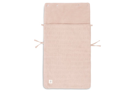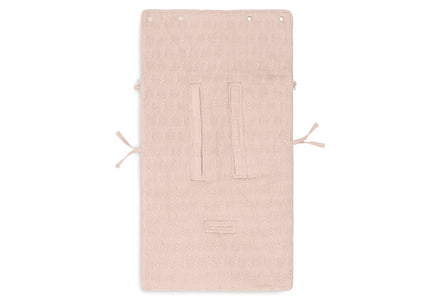 This wonderful footmuff for the car seat keeps your baby nice and warm from birth. That way you don't have to play with jackets in the car. The outside is from a vintage pink Breisel with confetti effect and the inner lining is made of warm fleece. Keep me warm and comfy!