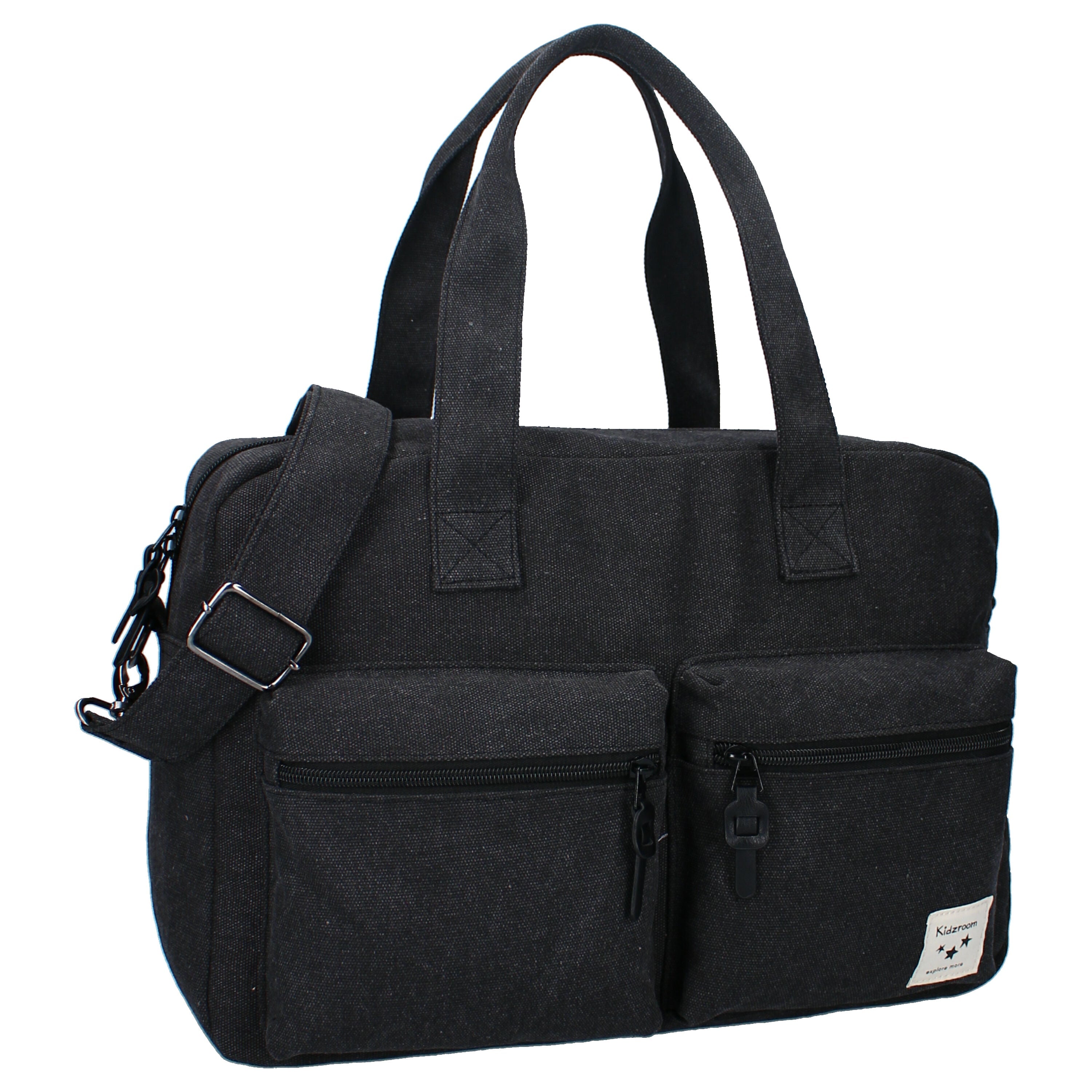 The Kidzroom Diaper Bag has one main compartment with three pockets and a zipper pocket. There are three more compartments on the outside, two of which are 'normal' and one flat compartment. The diaper bag is equipped with a matching changing mat and a thermo bottle holder. The inside of the Kidzroom Black & White Diaper Bag is water-repellent and has a comfortable shoulder strap. Moreover, you can quickly attach it to your pram or buggy with a simple action.