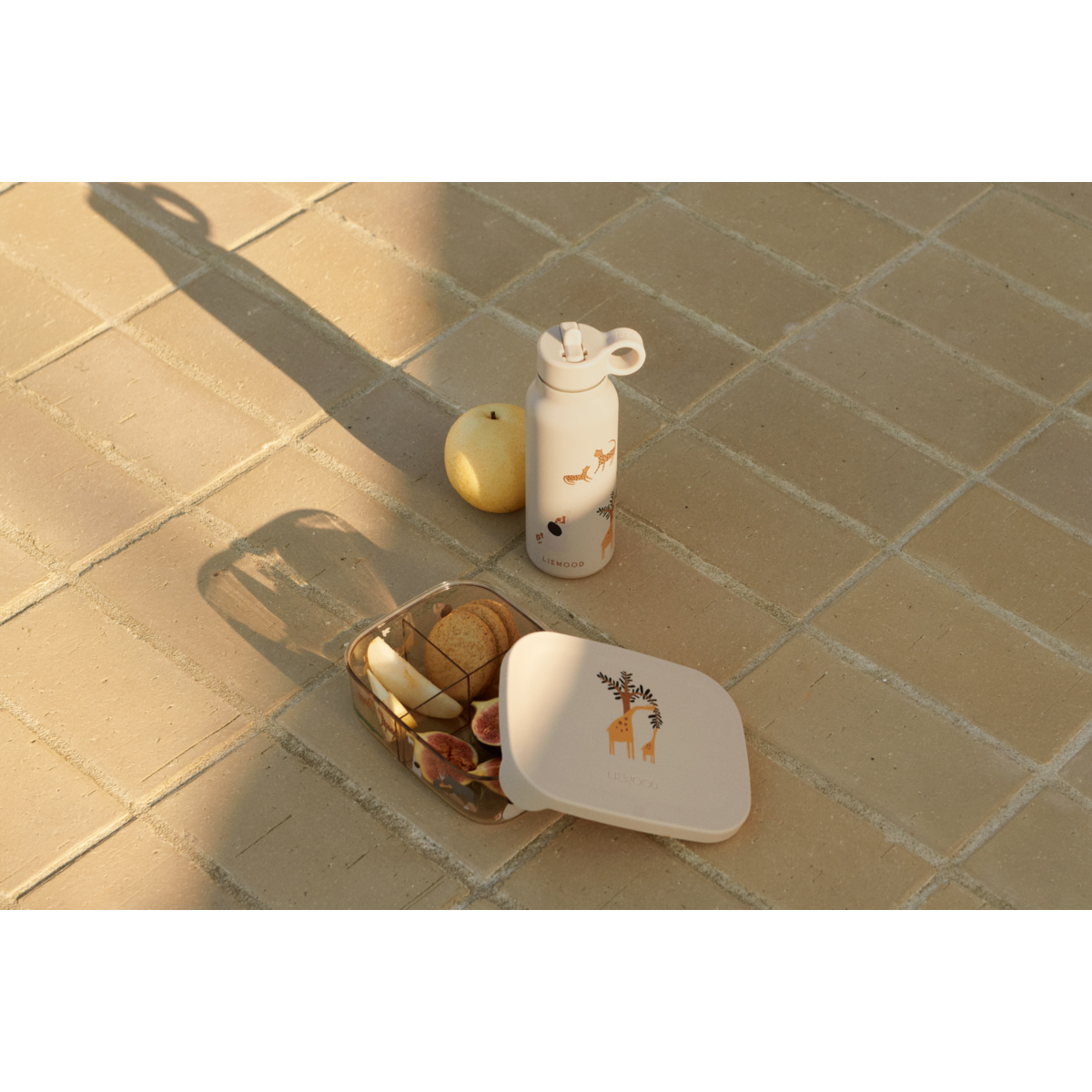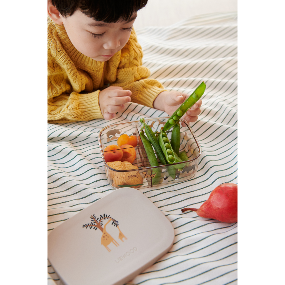 This lightweight lunch box from Liewood is made of tritan and has a cute silicone lid that closes perfectly. It is perfect for storing your lunch because of the three handy compartments.