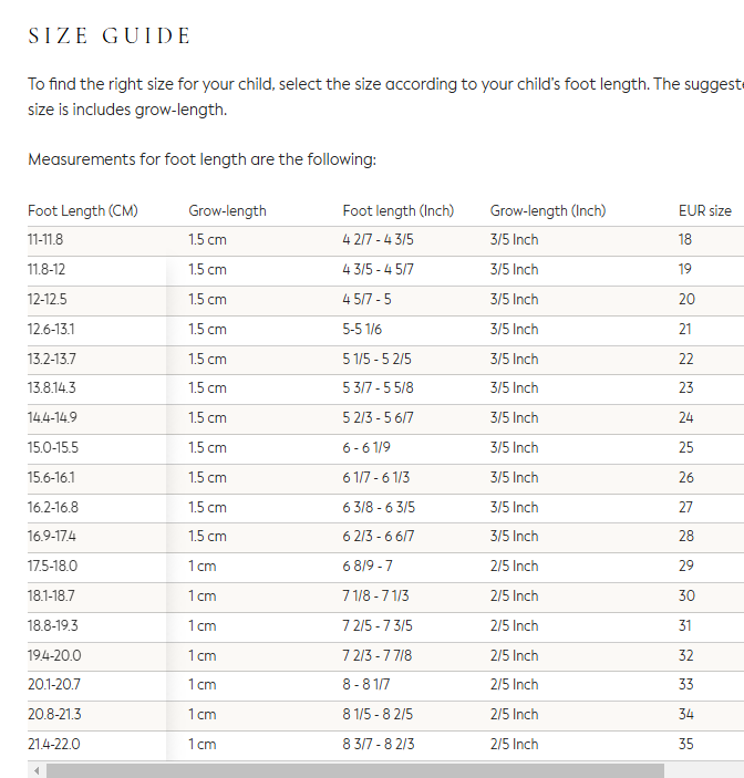 You have to measure the foot when it is flat on the ground, then add 1 cm. Then you look at the size chart and you know which one you need.