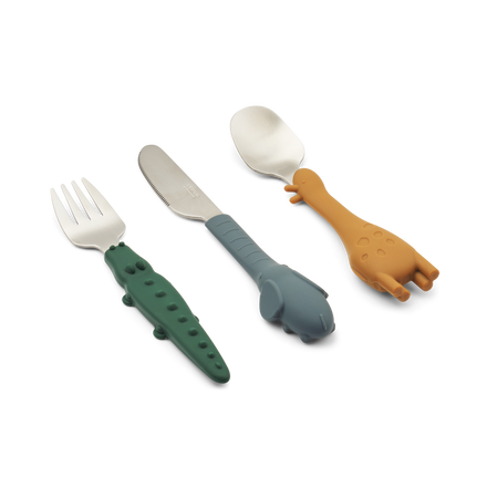 Eco friendly cutlery set from Liewood. The cutlery is made of stainless steel and silicone. They feel soft in the mouth.