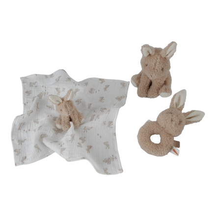 This gift box Little Farm is the perfect maternity gift or baby shower gift. This beautiful box contains three soft products to sleep with, hug and play.