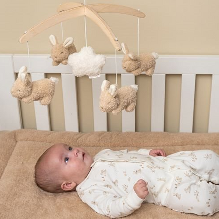 This beautiful wooden Little Dutch Music Mobile has a relaxing way for babies. There are five toys with aquatic animals on the mobile and the mobile plays a wonderfully soft lullaby.