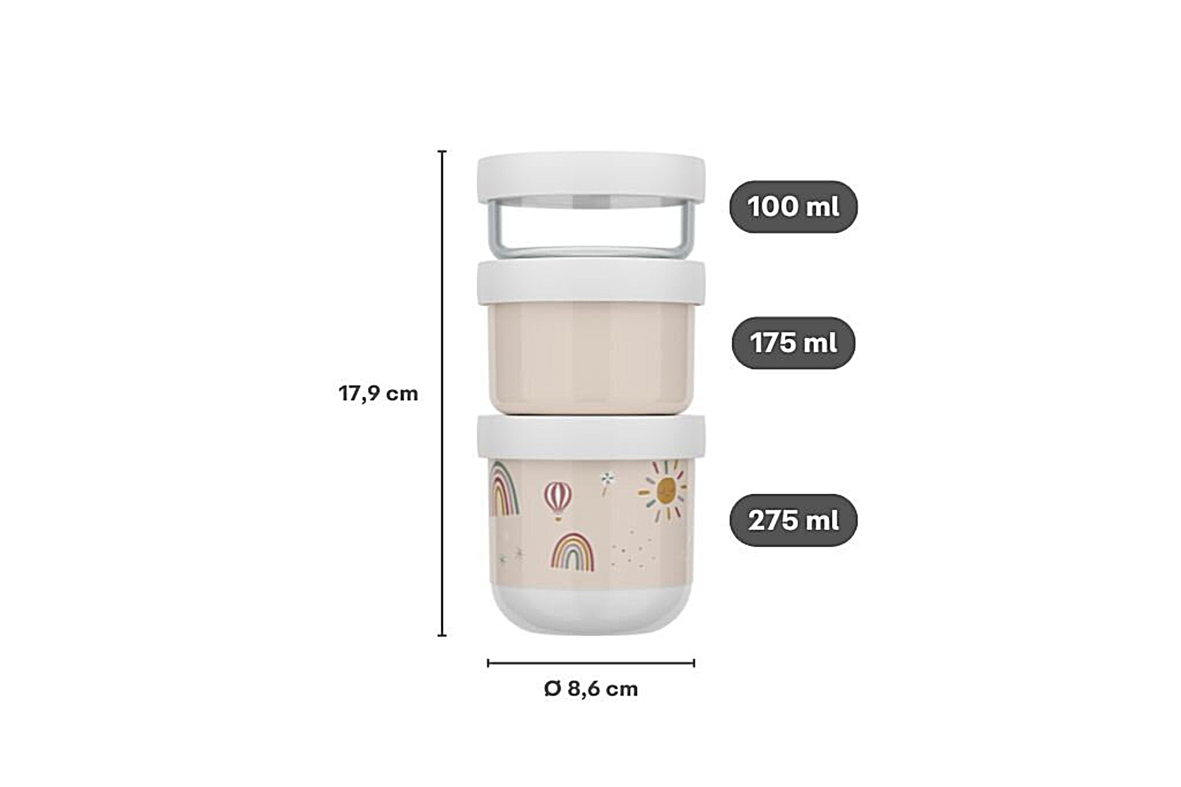 With the Mepal Little Dutch snack box set in the cheerful Little Farm theme, you can now take snacks with you conveniently and stylishly. The three colorful boxes are perfectly sized for small snacks such as fruit, cookies, or veggie sticks. Thanks to the clever stackable design, the containers screw together securely, so they fit neatly in a school bag or diaper bag.