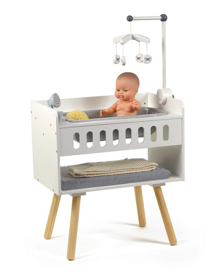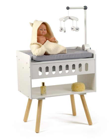 So nice this wooden care table from Minikane. You can now give your doll a bath with the hand sprayer. Then tasty dry on the change table while your doll can look at the cell phone. Too nice this gift :-)