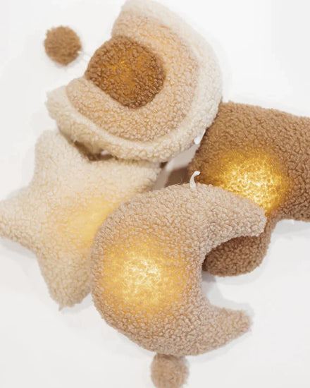 The mobile phones of Mrs. Ertha are made of organic cotton with a selection of excellent fabrics for the little ones. A light inside has three tone variations and various intensities and possibly charging via USB.