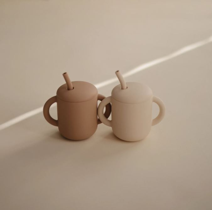 This is a very nice exercise cup of mushie with a lid and a straw to prevent spillage. Made from soft silicone to make your little one get used to a cup and a straw to drink.