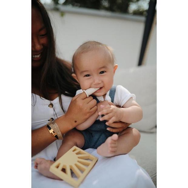 Very handy fingert teeth brush or baby toothbrush from the mushy brand. It can be quite a job to brush the teeth of your baby /child. They bite and suck cheerfully on normal toothbrushes, but once you start brushing it is often drama. This silicone fingert teeth brush is easy to place your finger and feels very soft in your child's mouth. Also ideal to comfort your child at coming teeth.