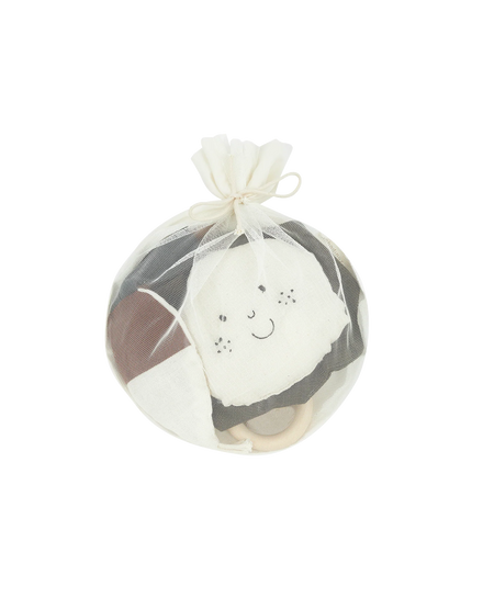 This fun set of baby gym toys is ideal to entertain your little one! The set consists of three fun baby activities: crinkle paper, a rattle and a teething ring made of solid maple wood.