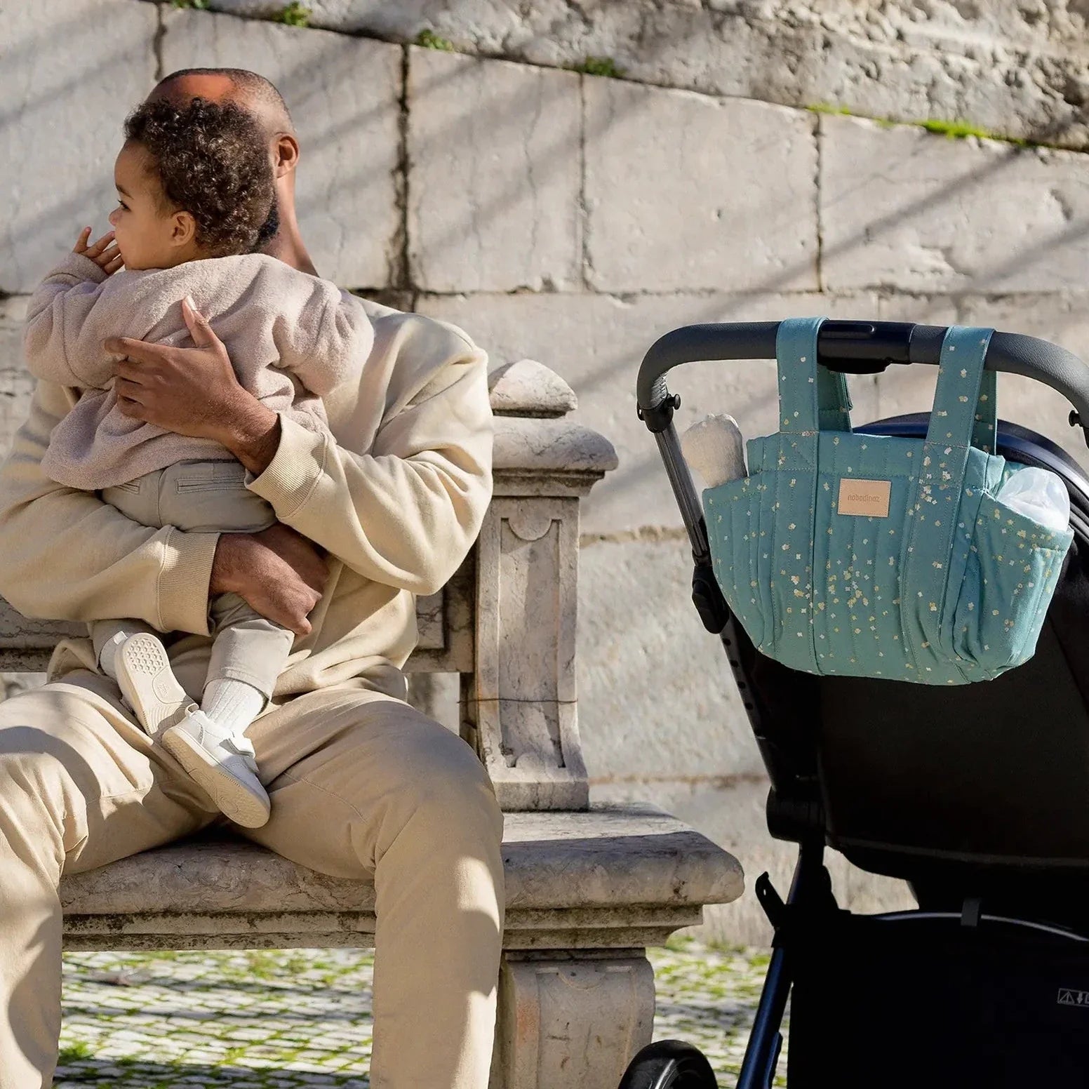 Nobodinoz Buggy Organizer Stroller Bag | Gold Confetti /Magic Green