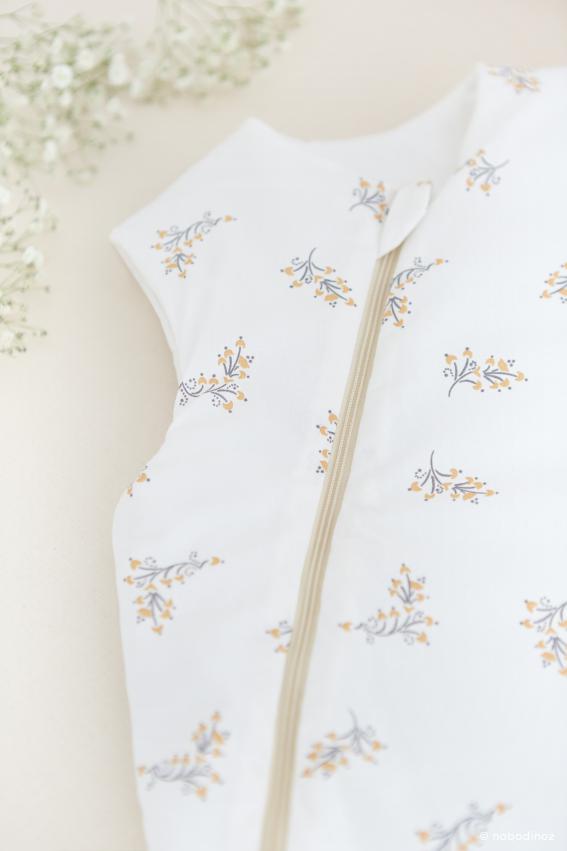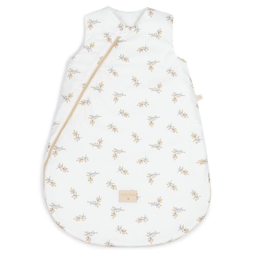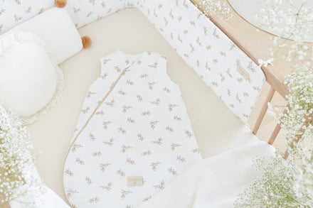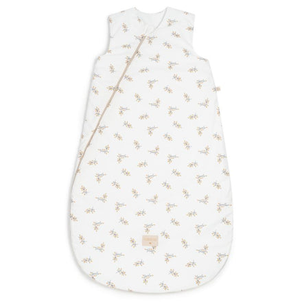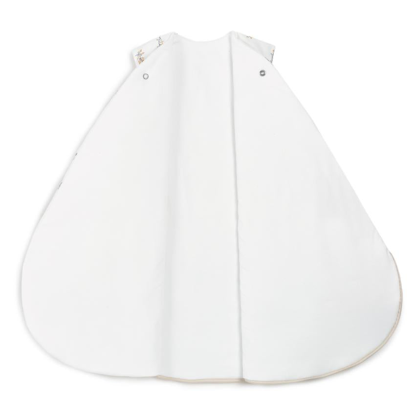 This fun sleeping bag from the Spanish brand Nobodinoz keeps your baby wonderfully warm. The outside is printed with a nice print, the inside is in a solid color. The sleeping bag can be opened and close with a zipper and closes in the middle with a bow. The sleeping bag is extra lined so that it is well warm.