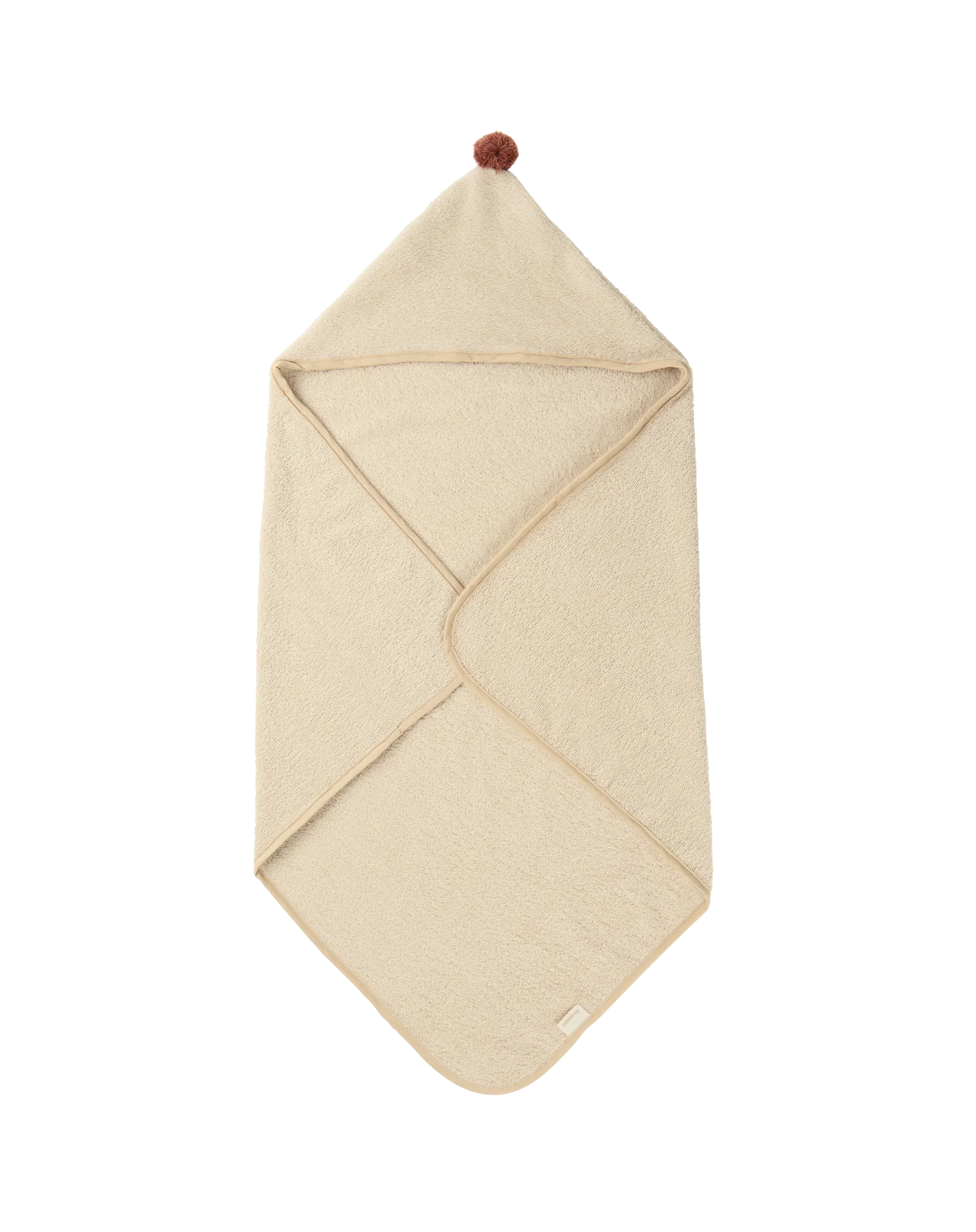 Nobodinoz So Cute Bath Cape With Pompom Organic Cotton | Almond