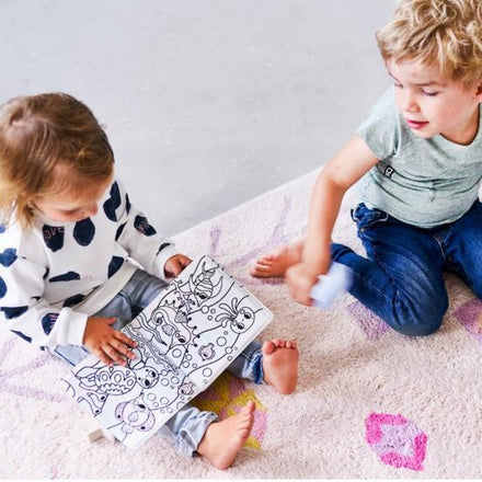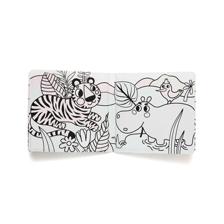The nice drawings get color as soon as the book gets wet. Which animals do we find in and around the water? The most beautiful animals appear. A dolphin, a fish and a hippopotamus are present. Soft and lightweight booklet for guaranteed hours of bath fun.