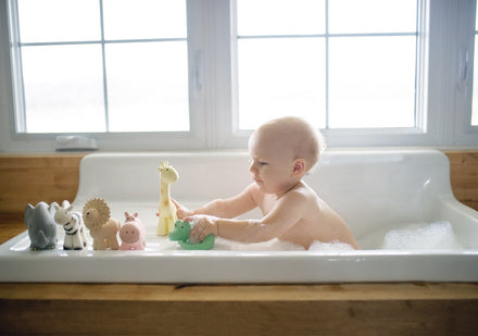 a super cute bath toy in natural latex from Tikiri to play with and to bite. Ideal to take a bath with a while . The bite toy is made of rubber. There are no holes in the design making bacteria and fungi no chance to nest up . The beach playjes contain a call that rings.