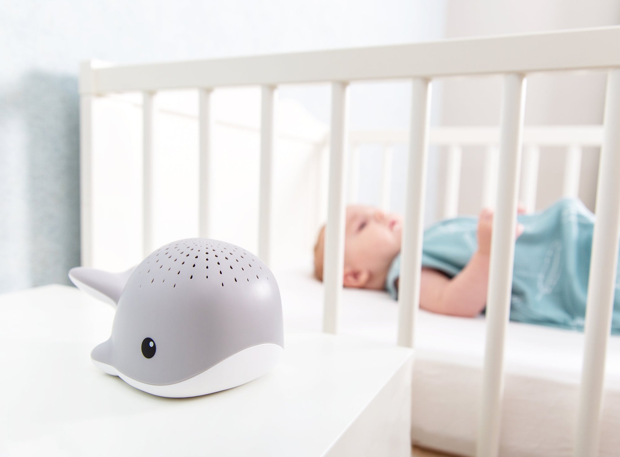 Wally projects water drops in different colors (blue, green, red or rainbow colors) against the ceiling. In addition, Wally plays three different melodies, namely ocean sounds, heart rate and slate songs. Always a tan and a sound that matches your child.